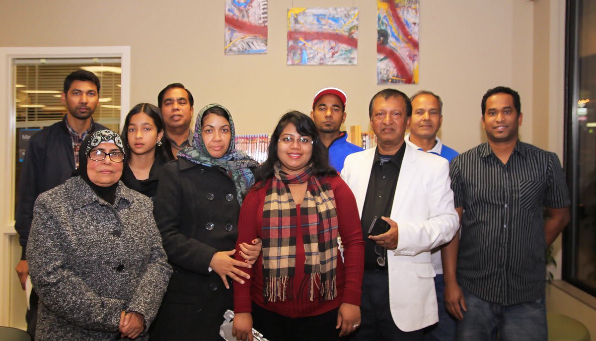 দেলোয়ার জাহিদ, আলবার্টা প্রদেশের রাজধানীতে এডমন্টন পাবলিক লাইব্রেরী (পেনি মেকি শাখায়) আয়োজিত এক্সিবিশনের উদ্ভোধনী অনুষ্ঠানে সভাপতির ভাষন দিচ্ছিলেন।