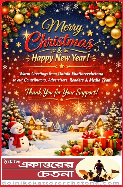 Warm greetings from Dainik Ekattorerchetona to our valued contributors, advertisers, readers, and the entire media team. Your trust, creativity, and continued support inspire our commitment to responsible journalism and thoughtful storytelling. As we welcome the New Year, we look forward to walking together with renewed hope, integrity, and dedication, and wishing you peace, good health, and success in the year ahead.