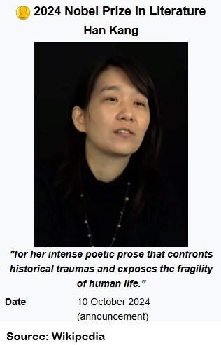 The Nobel Prize in Literature for 2024 serves as a testament to Han Kang’s literary genius, solidifying her place among the world’s most influential writers. Her works will continue to inspire, challenge, and resonate with readers for generations to come.
